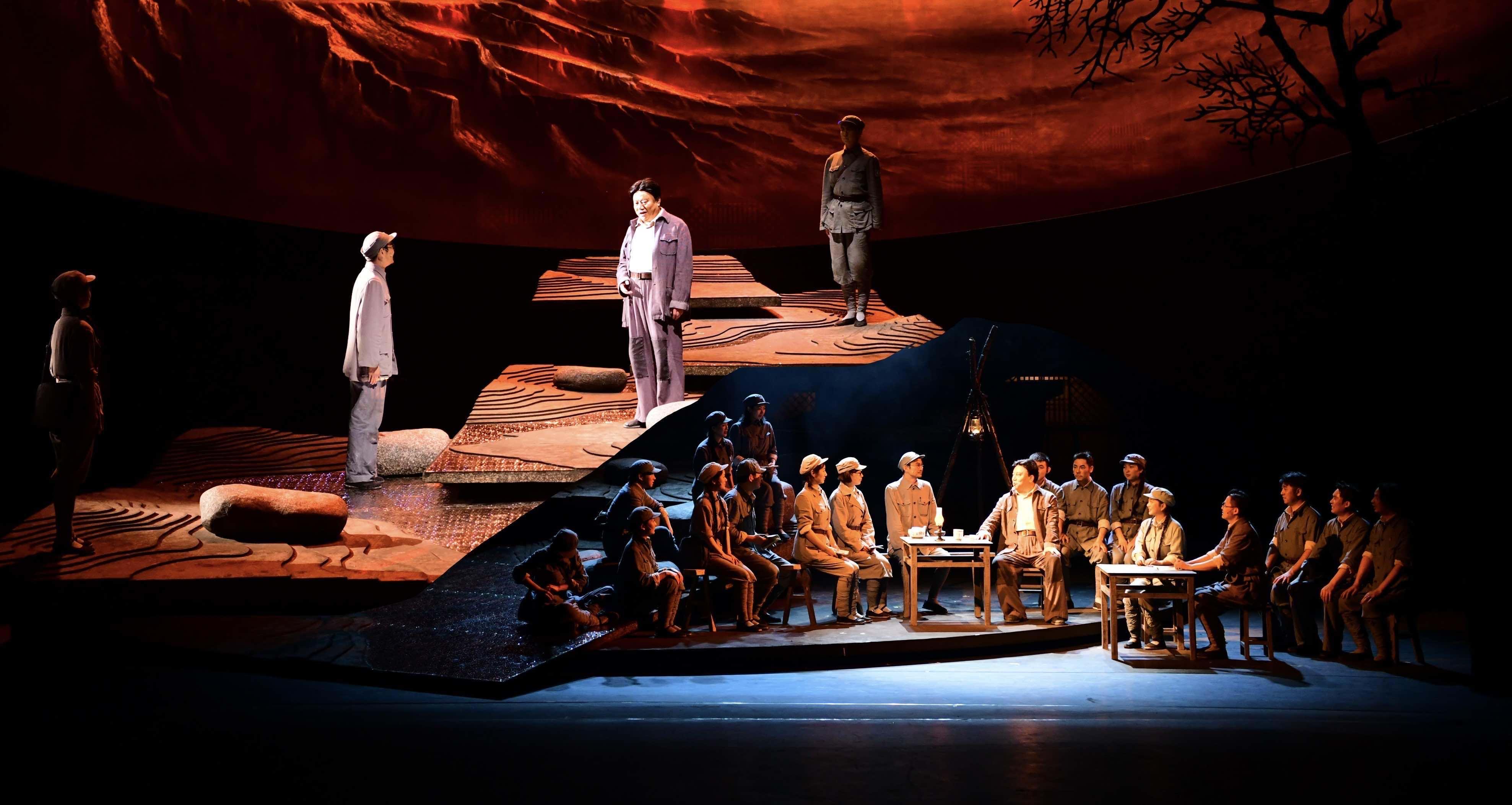 在各个革命根据地演出的歌剧《白毛女》,因为格外真实致使饰演“黄世仁”的演员被愤怒的群众围追堵截;深受百姓喜爱的《小放牛》等节目让演出队每到一地,都能循着群众留下的鸡蛋皮、花生壳被找到;以边区军民抗战生活为内容,改造自西洋艺术的木刻版画,开创了划时代的“革命化”“民族化”“人民性”的艺术风格……伴随着舞台上每一位革命文艺工作者的成长,观众直观地看到了社会主义文艺创作的初心,真正体会到了“文艺为人民服务”的崇高使命。